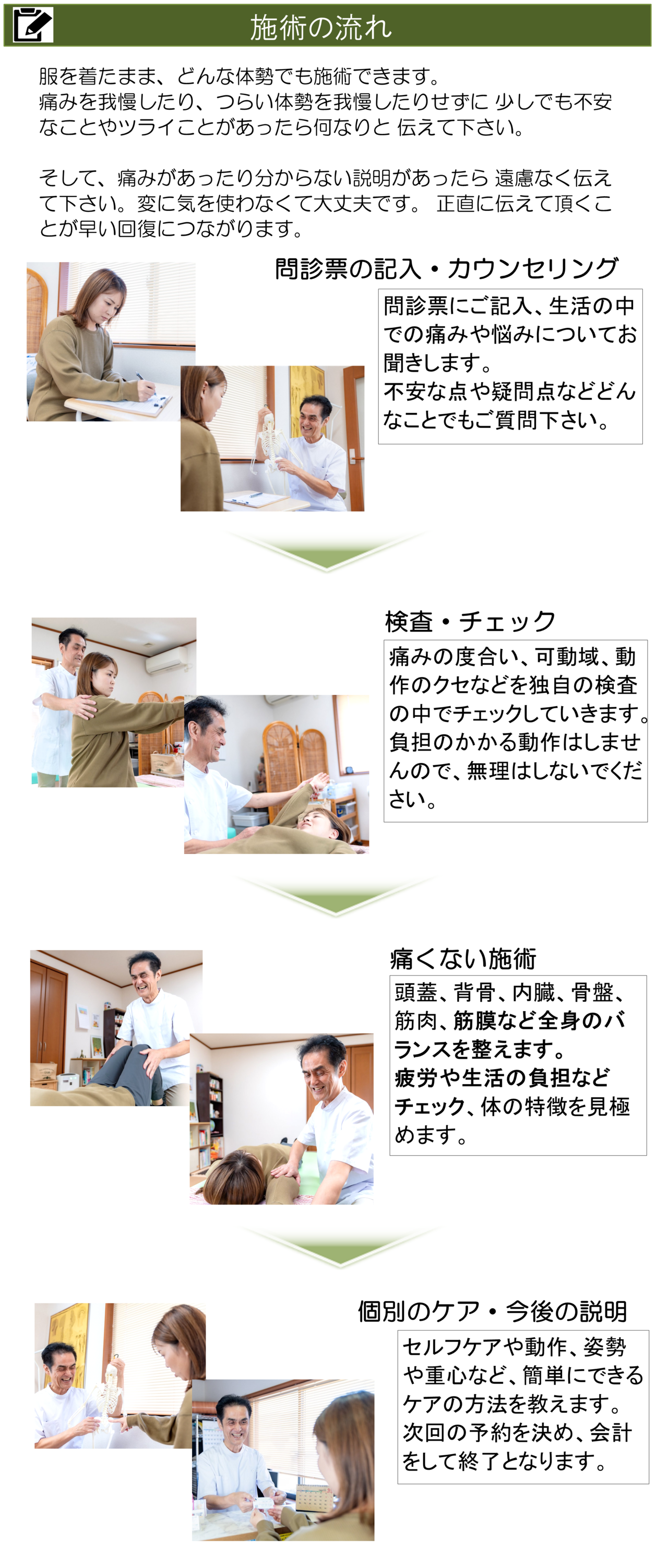 整体は体に触れる施術ですので、不健康な体は重い、硬い、動かない、違和感だらけです。